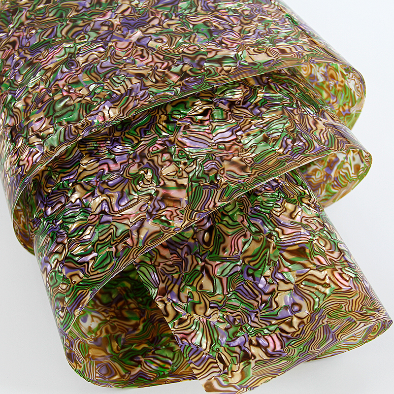 膜的顏色亮麗、花紋獨特、純手工拼花而成,故稱花式膜。其無法被復制的花色,獨一無二紋路效果,廣泛流傳于手機殼、紐扣、馬賽克等建材裝飾貼面行業。